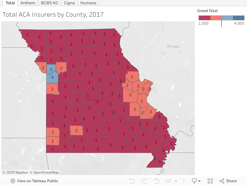 In the last few months Americans found out that several insurers, including major players Aetna and United, would largely exit the Obamacare exchanges in the coming year. In most Missouri counties, that leaves only one insurer providing any kind of exchange coverage at all. As I pointed out in Forbes, Missouri has been more or less divvied up among Blue Cross Blue Shield insurers, with effective exchange monopolies for both in many regions of the state.