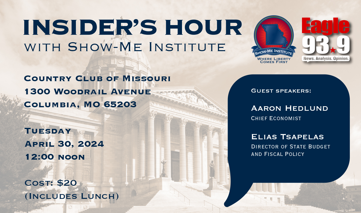 What’s happening as the session wraps up in Jefferson City? Missouri’s $50 billion budget, healthcare price transparency, and a proposed Taxpayer Bill of Rights. Get the latest information at the Insider’s Hour with Show-Me Institute and 93.9 The Eagle!