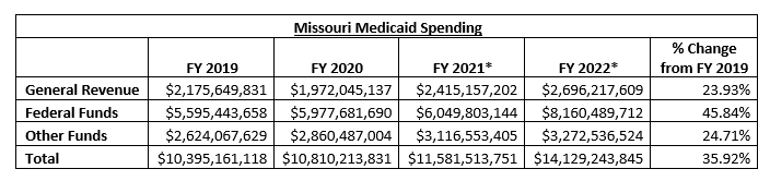 Here is a look at the last four years of Missouri’s Medicaid spending with the governor’s newly released estimates included: