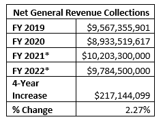As you can see, the program is expected to be almost 36 percent more expensive than it was just three years ago. If you look at state general revenue (GR) spending (where our state income and sales taxes go), the story isn’t much better. The general revenue cost of the program is estimated to be more than $520 million higher than it was in 2019 (a nearly 24 percent increase), which is far greater than state tax revenues have grown over that same period. See the table below: