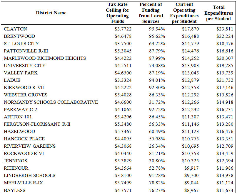 There are some obvious high points, the Clayton School District is [sic] spent $19,681 per student, according the analysis. That’s compared to Clayton’s neighbor, St. Louis Public Schools, which spent $9,826 per student.