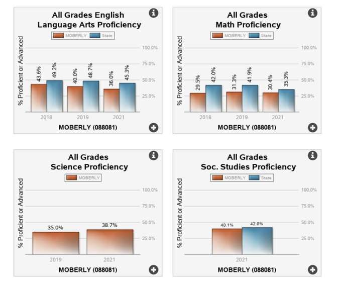 While the lieutenant governor praised the vocational programs in Moberly, the liberal programs do not appear to be going as well. In 2021, little more than one third of students in the Moberly school districts scored proficient or advanced on the state’s language arts exam and fewer than one third did in math. The average ACT score for Moberly students was 18.5, well below state and national averages.