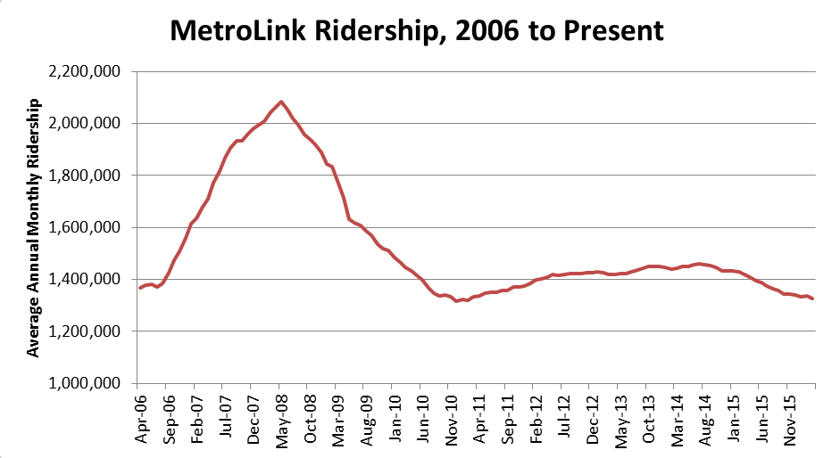 Saint Louis’s existing MetroLink lines already encounter ridership problems, despite serving areas with more employment and population than the proposed North-South line would. After spending more than $2 billion building the current system, a lower percentage of Saint Louisans use transit now than did in 1990. And, despite the hopes of transit activists, the situation is not getting any better. Both MetroLink and MetroBus ridership peaked in 2008, and even as better economic times have come to Saint Louis in the last few years, MetroLink ridership continues to stagnate. The result of this failure to draw more riders is that, accounting for all light rail costs since 1992, the MetroLink has cost Saint Louis nearly $10 for every passenger that has ever stepped on board, with a one-way fare of only $2.50. The bottom line is that the existing MetroLink has, despite the investment, failed to achieve meaningful progress toward promoting transit ridership or generating urban development. There is little reason to believe that an expansion will yield better results.