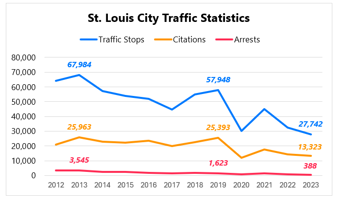 I’ve lived in the city for two years now, and I still haven’t seen someone in the city get pulled over for driving into oncoming traffic or running red lights. The data confirm this observation, as vehicle stops, citations, and arrests in the city have all greatly decreased.