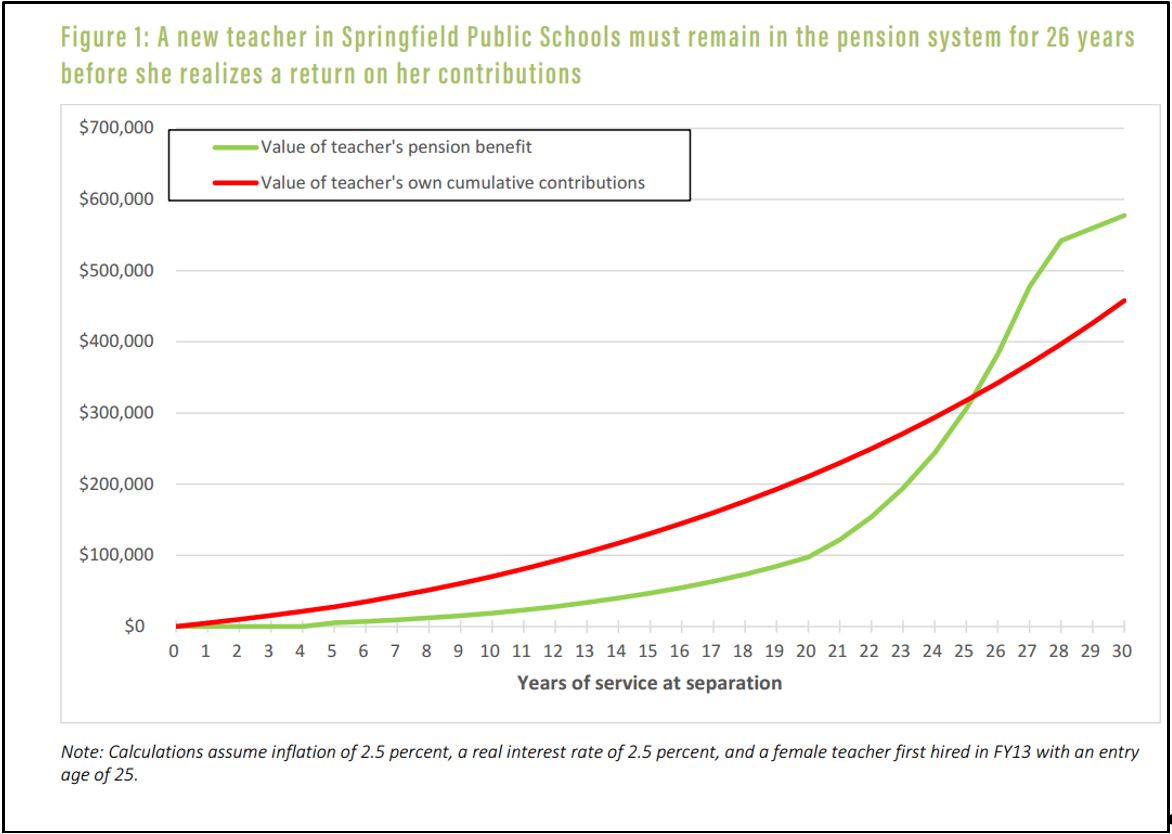 In Missouri, the study included the Springfield Public School District. Teachers here must work 26 years before they finally break even.