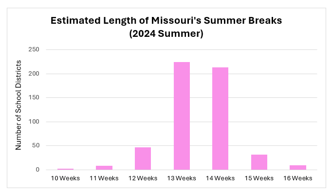 How long do most summer breaks last in Missouri?